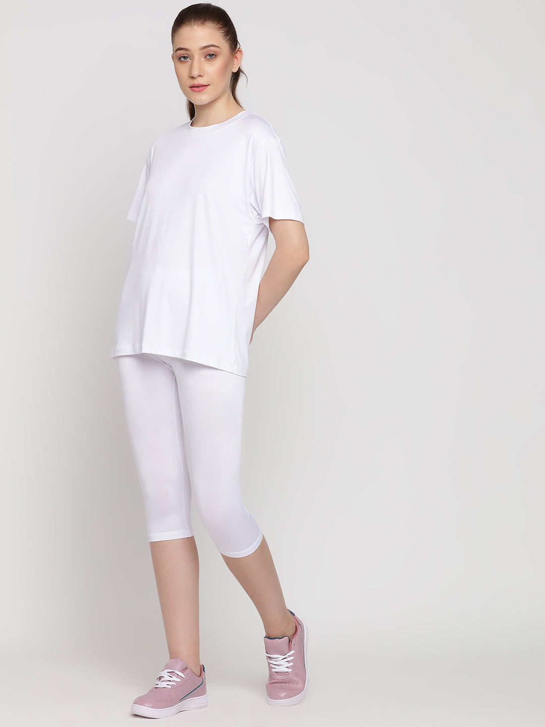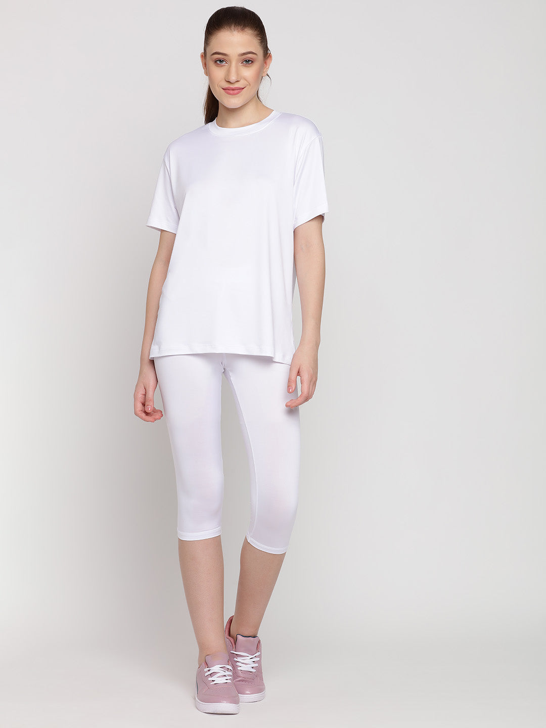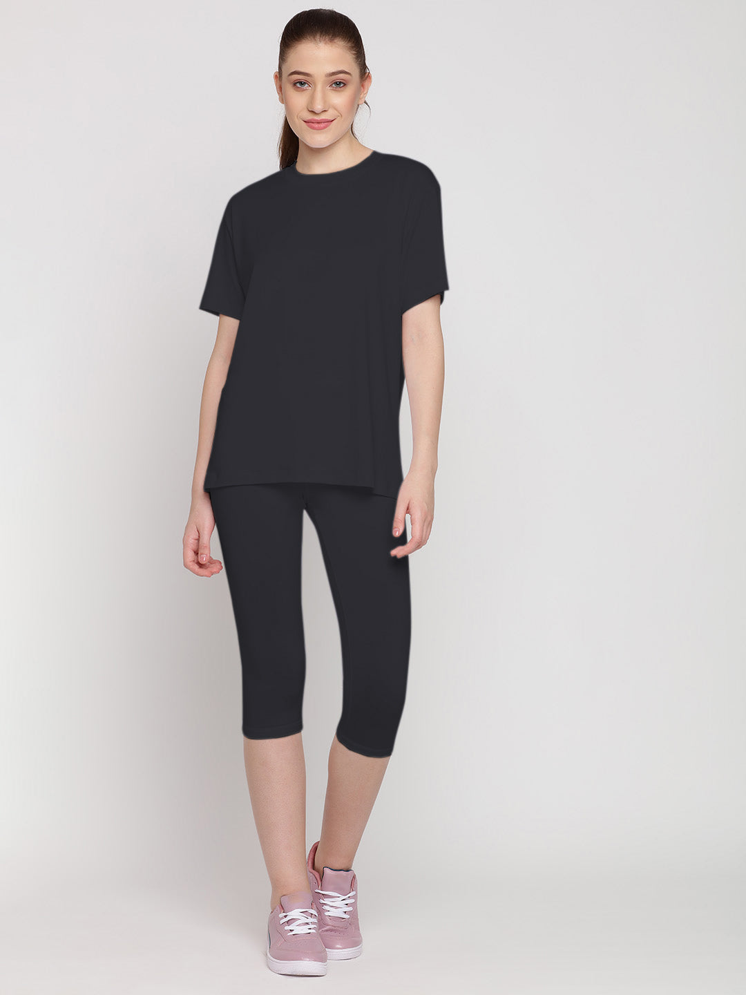 With an easy-to-wear, relaxed and loose silhouette for tee and a casual, comfy above-ankle leggings, the Adapt set is a must have.