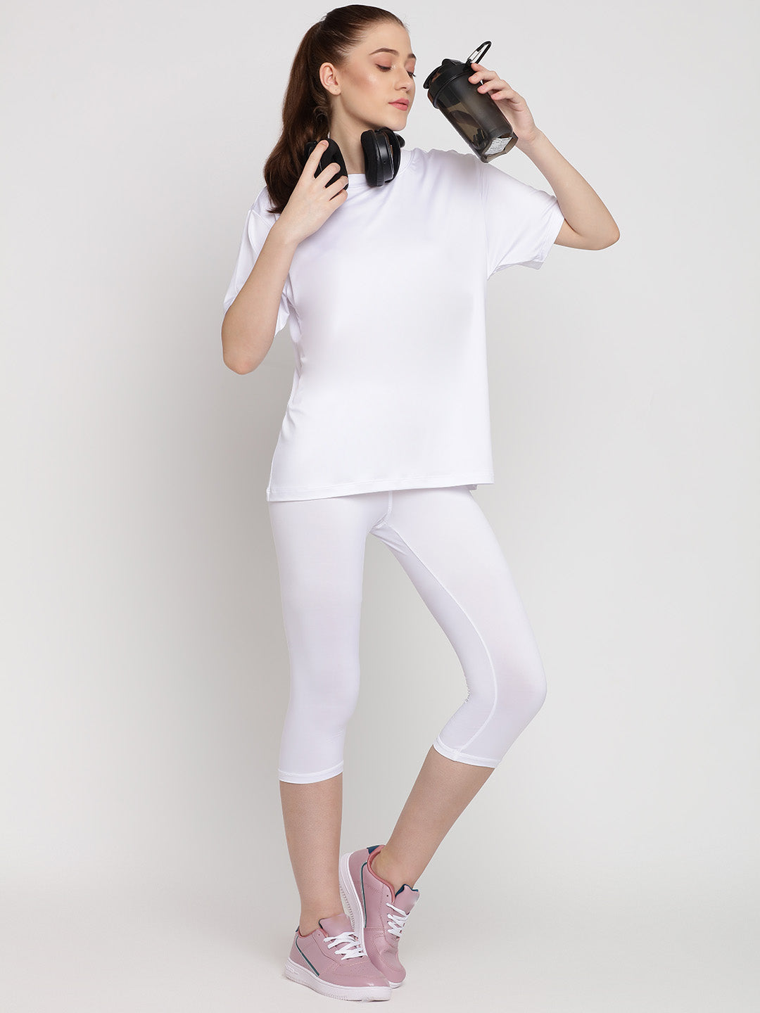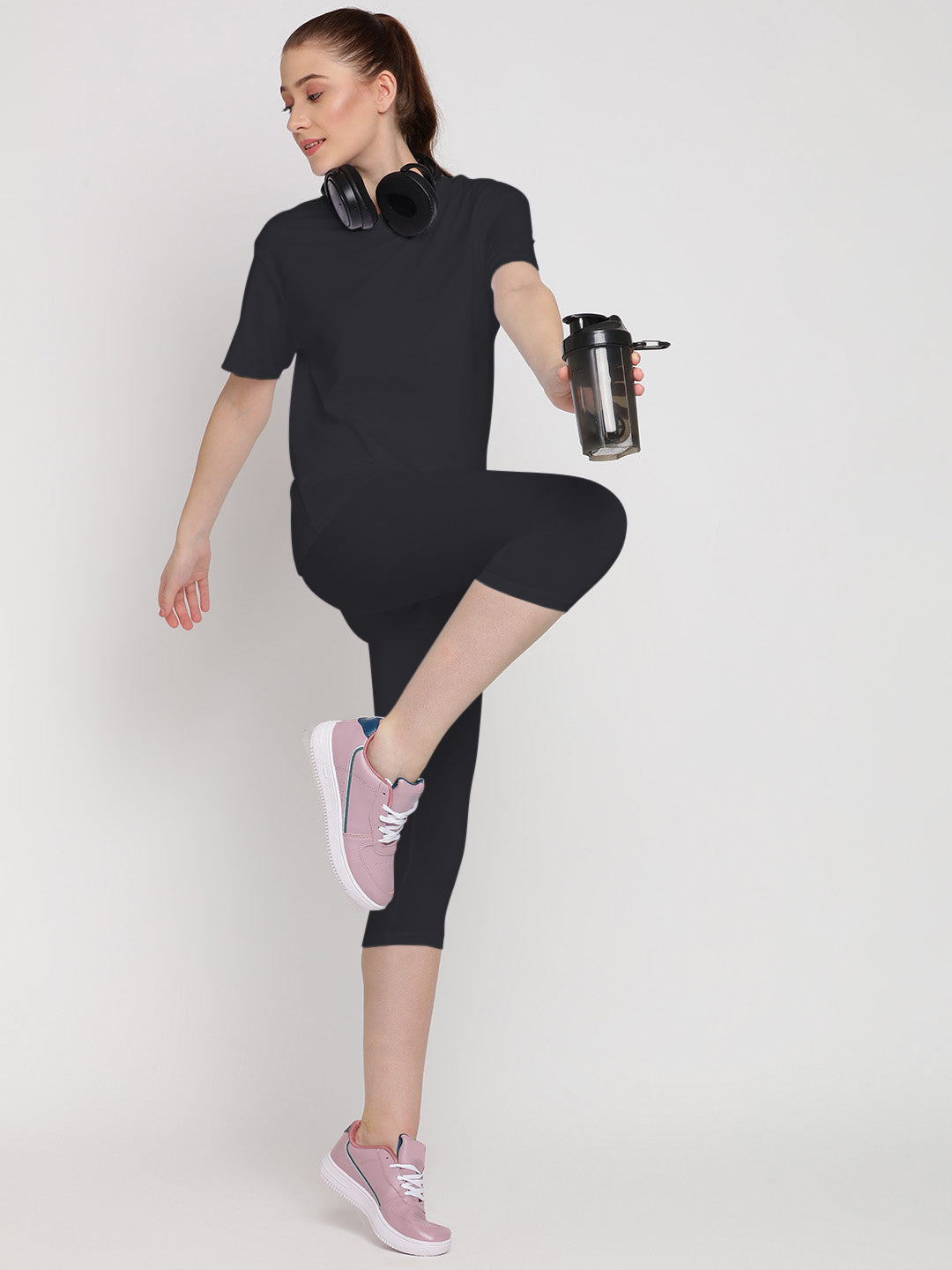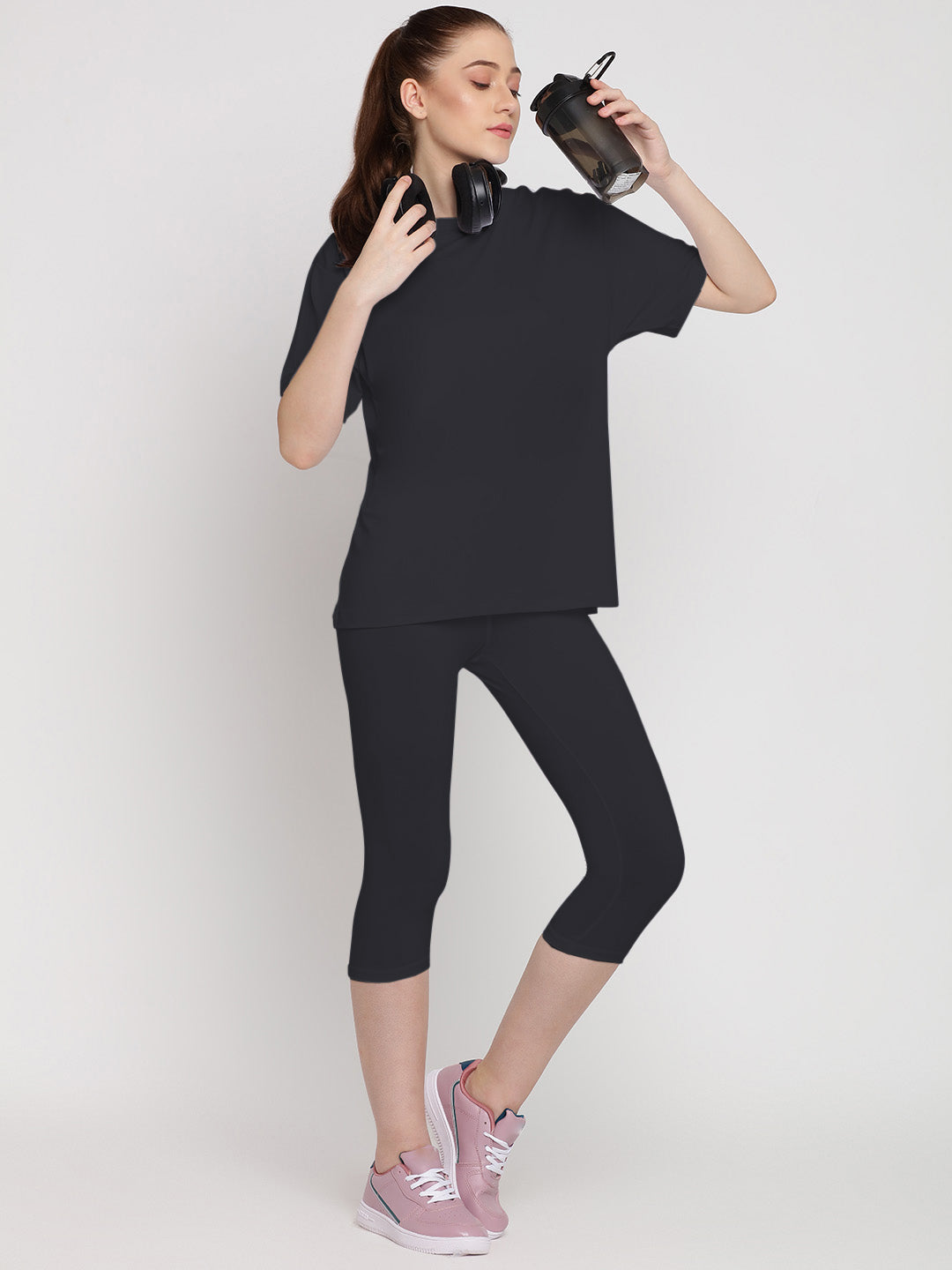 With an easy-to-wear, relaxed and loose silhouette for tee and a casual, comfy above-ankle leggings, the Adapt set is a must have.