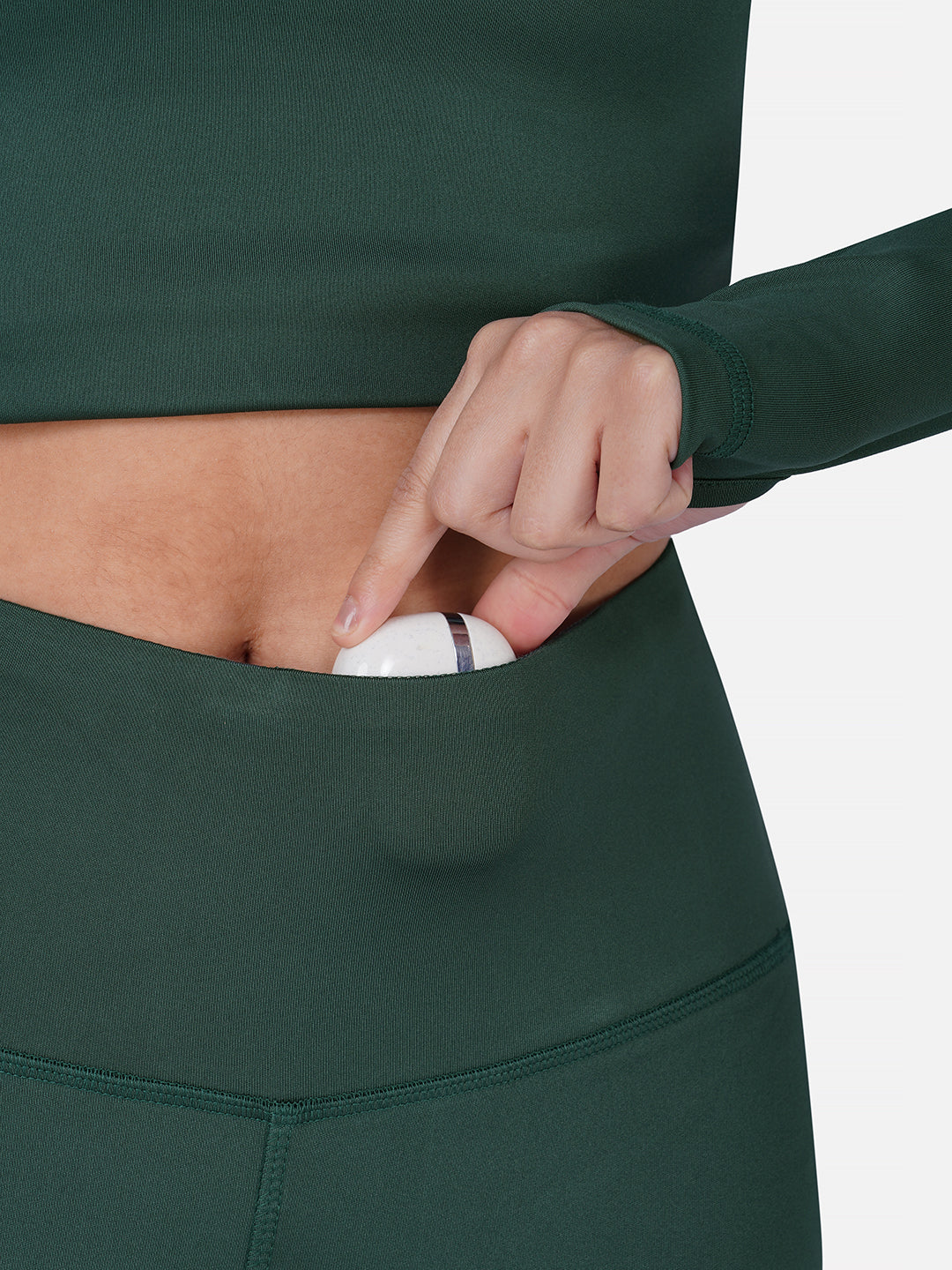High-waisted and beautifully contoured, these leggings offer a clean silhouette without feeling restrictive. The hidden waistband pocket keeps essentials secure and out of the way, while the fluid fabric makes them ideal for yoga, training, or long hours of comfortable wear.
