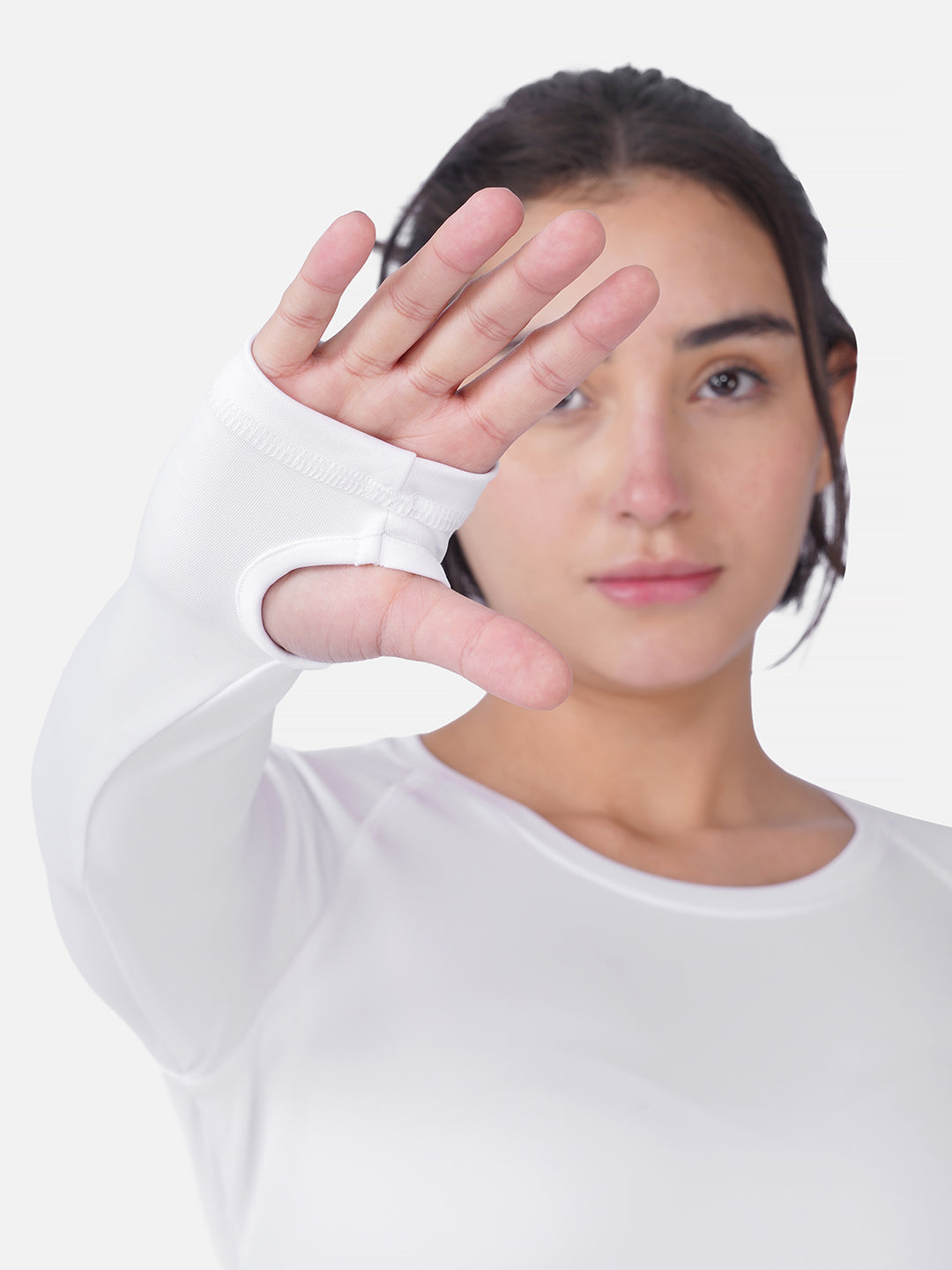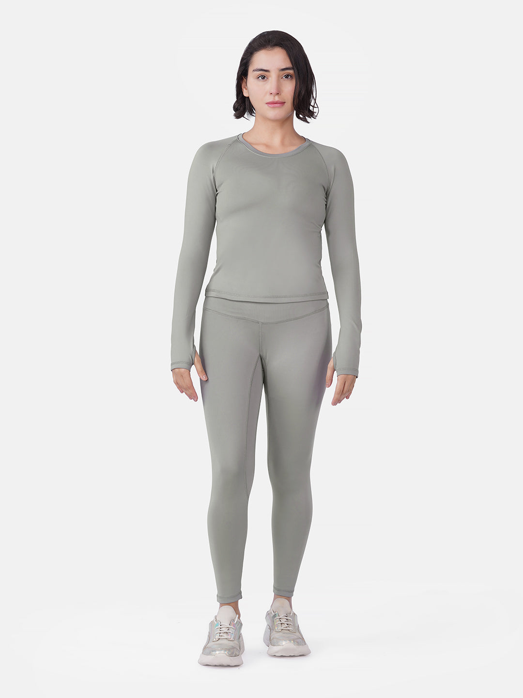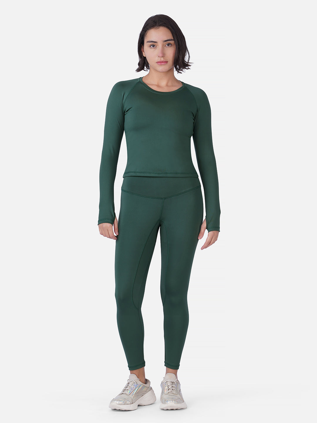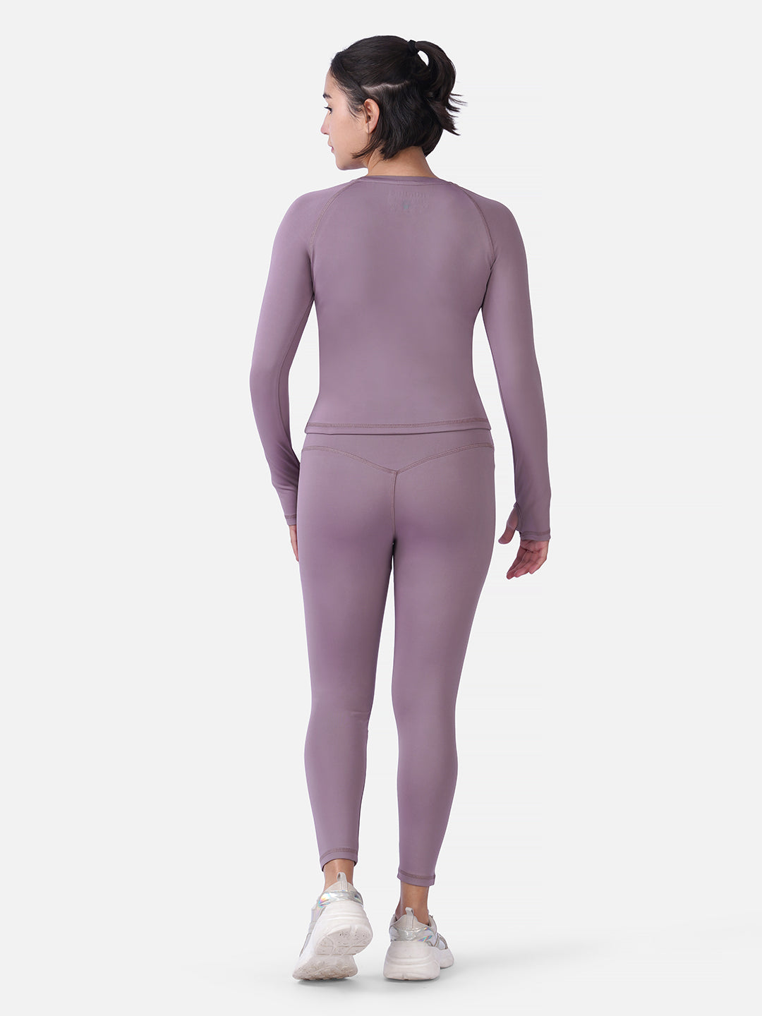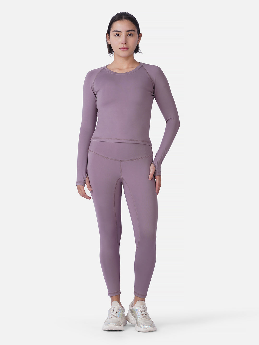 A clean, sculpting co-ord set that feels like a second skin. The long-sleeve fitted top features built-in thumbholes to keep sleeves in place while you move. The high-waist leggings contour beautifully and include a hidden waistband pocket to hold a card or key without getting in the way. Ideal for workouts, yoga, walks, or whenever you want effortless comfort with a polished look.
