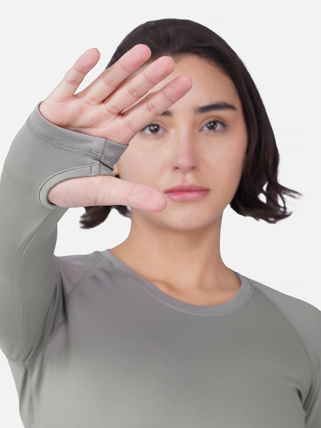 A minimal, body-skimming long-sleeve top with thumbholes that keep sleeves secure during movement. Clean lines, a soft hand-feel, and a flattering fit make it perfect for workouts, layering, or everyday wear.