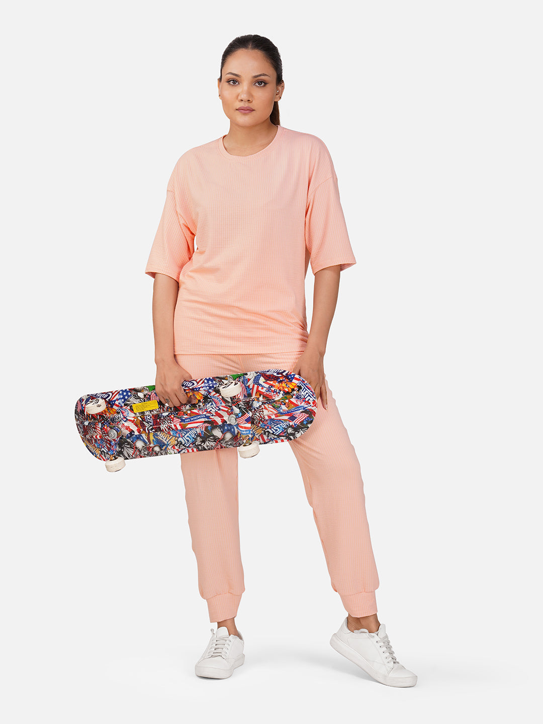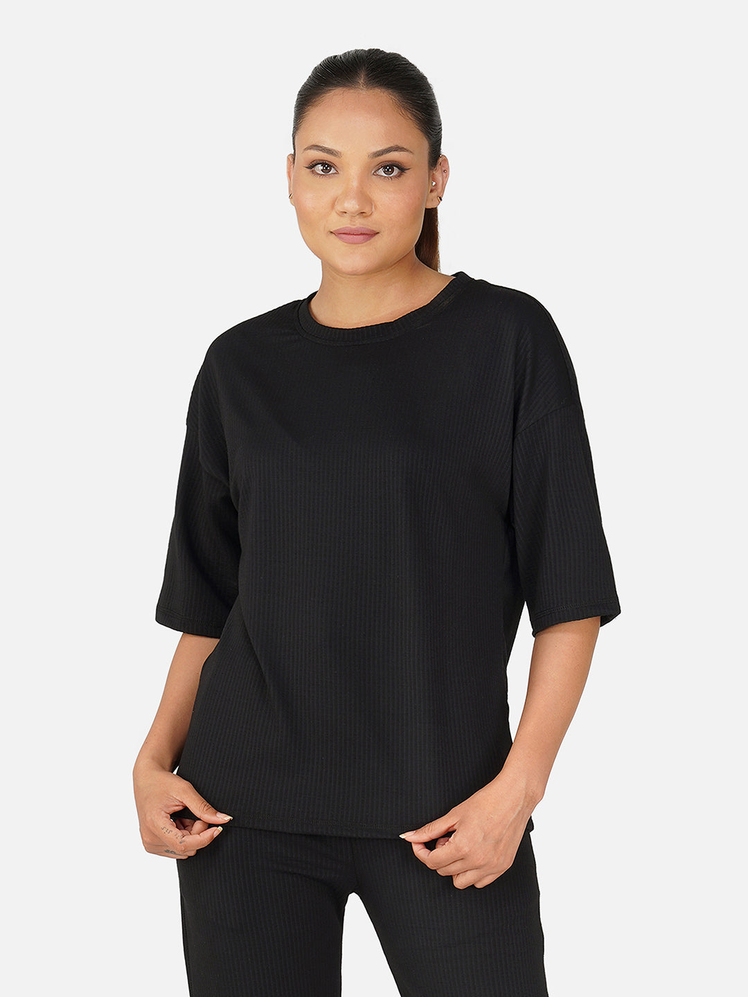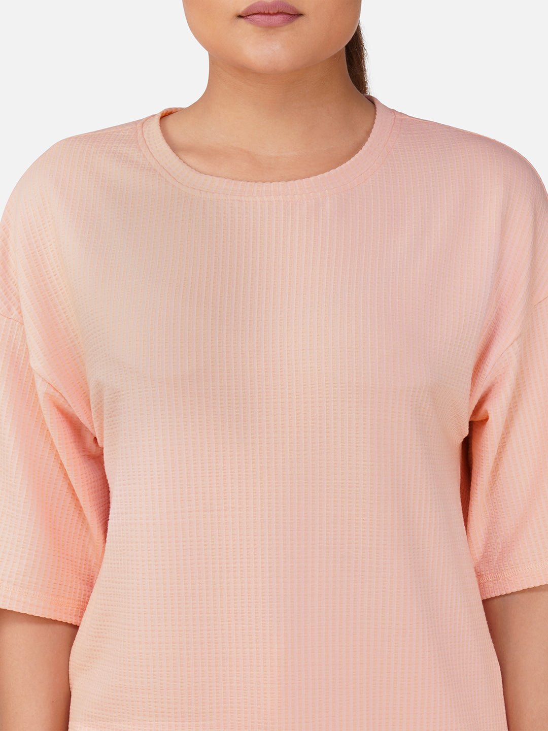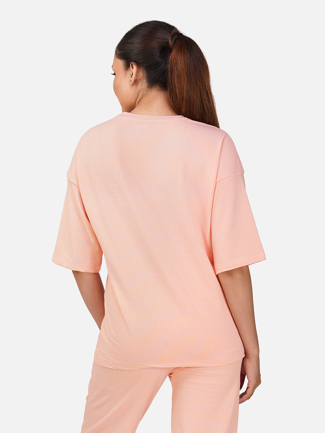 With its relaxed silhouette and airy feel, this tee is perfect for lounging, traveling, or pairing with your favourite joggers or leggings for a chic, laid-back look.