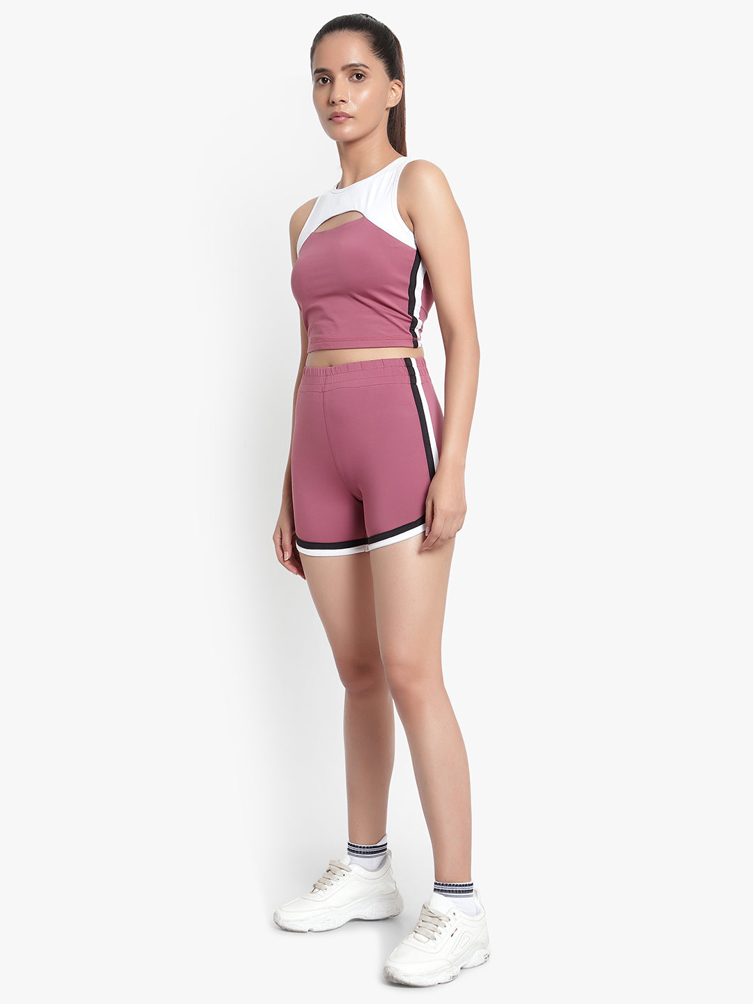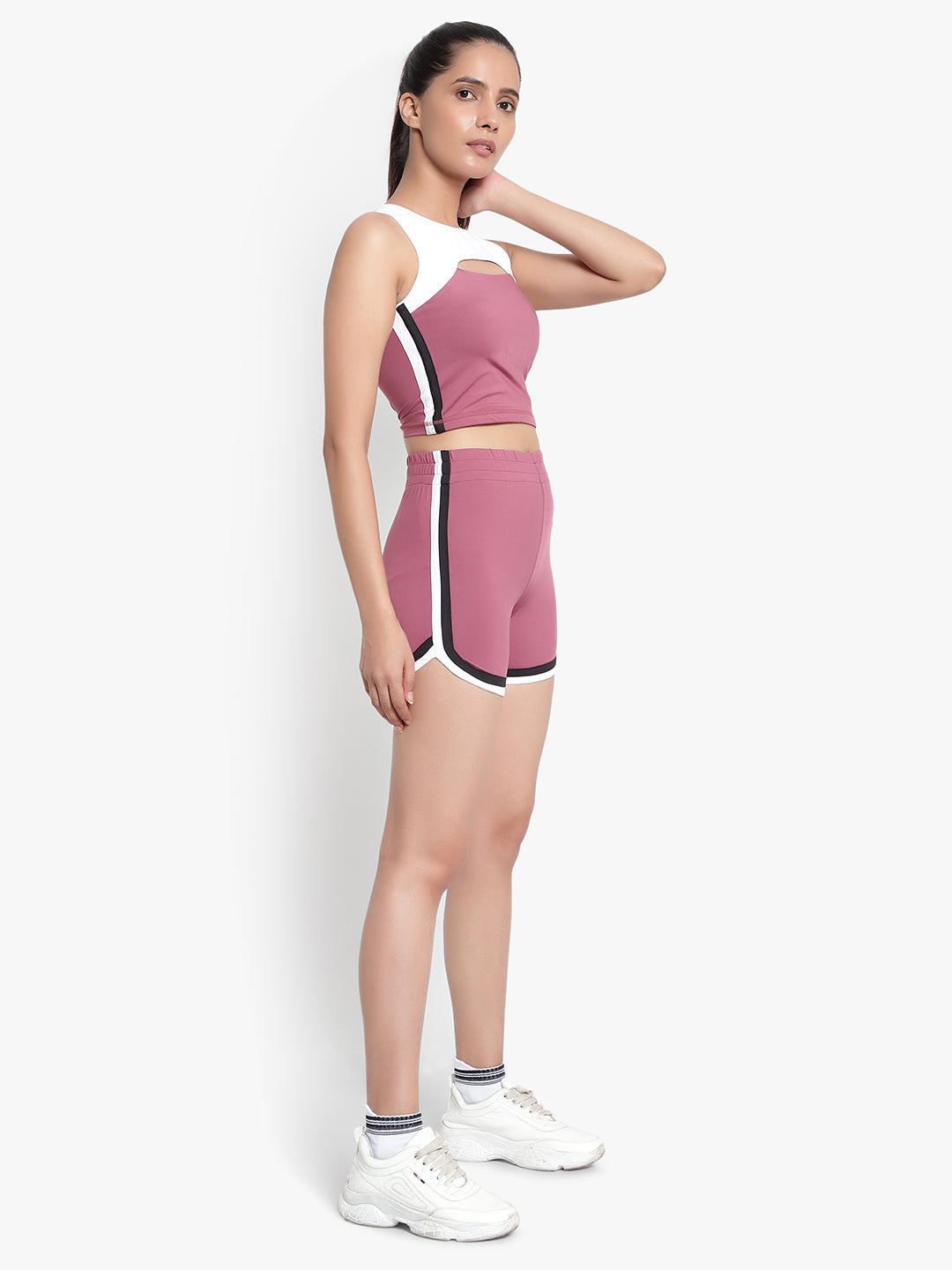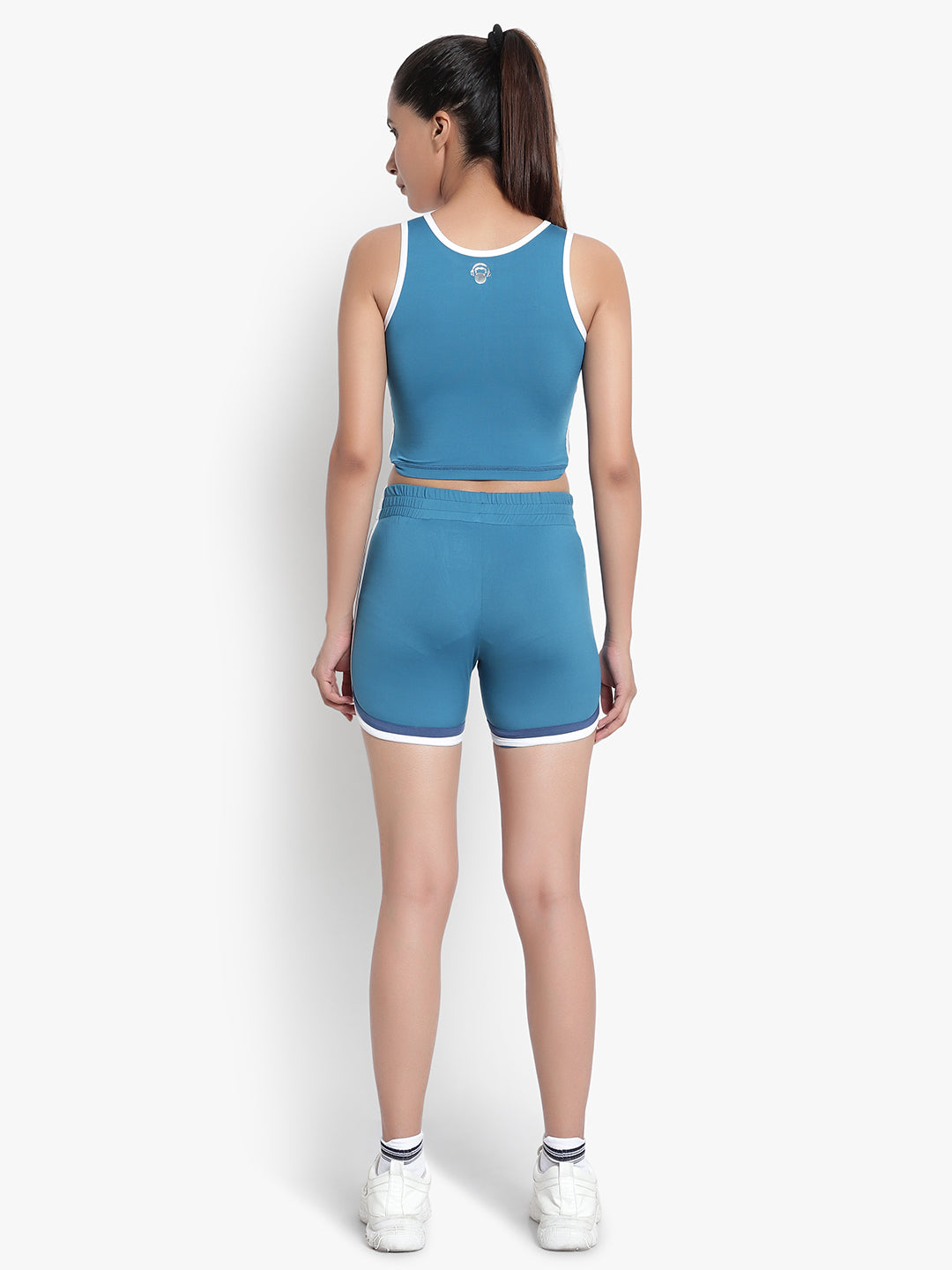 Designed from a soft, lightweight, cool fabric and adding a sassy note with side colour stripes along with front & back logo graphic, this set flatters your curves and makes a style statement.