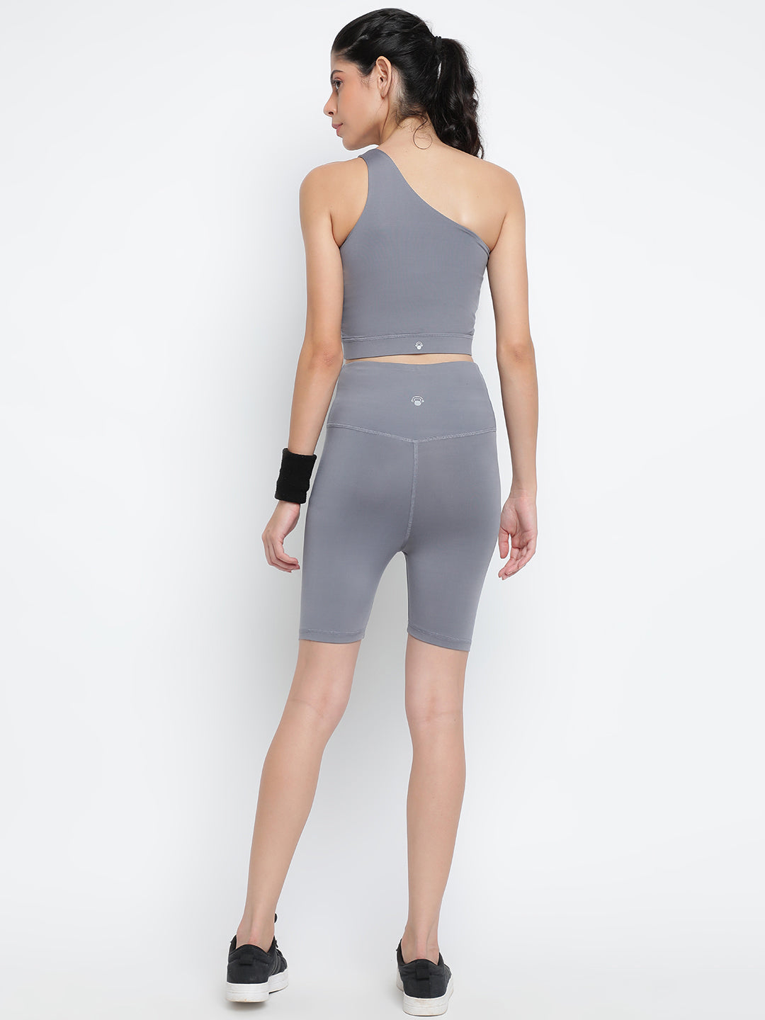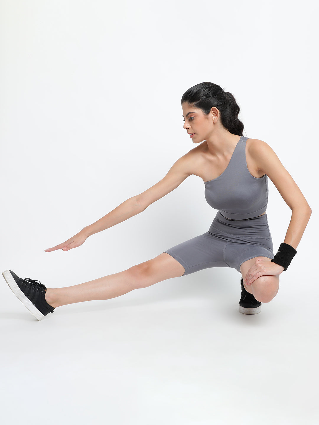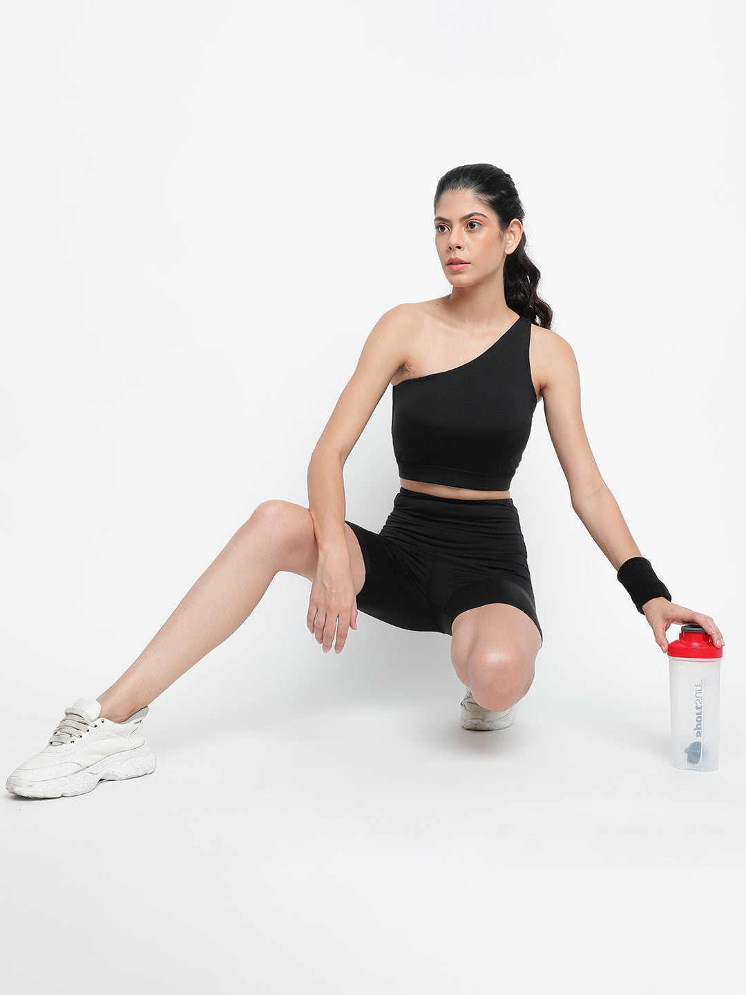 This stylish one shoulder Crop teamed with matching Shorts is just what the gym doctor ordered. Diagnosis: Fabulous! Perfect for your training, Dancing and Work-out. Look super while feeling amazing in Desire. So Buttery Soft-it feels Weightless.