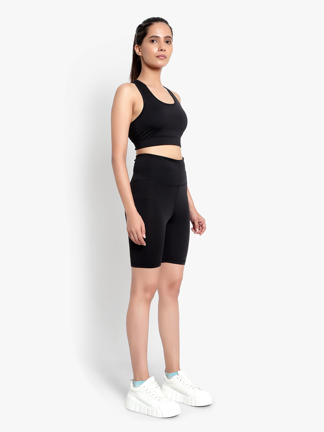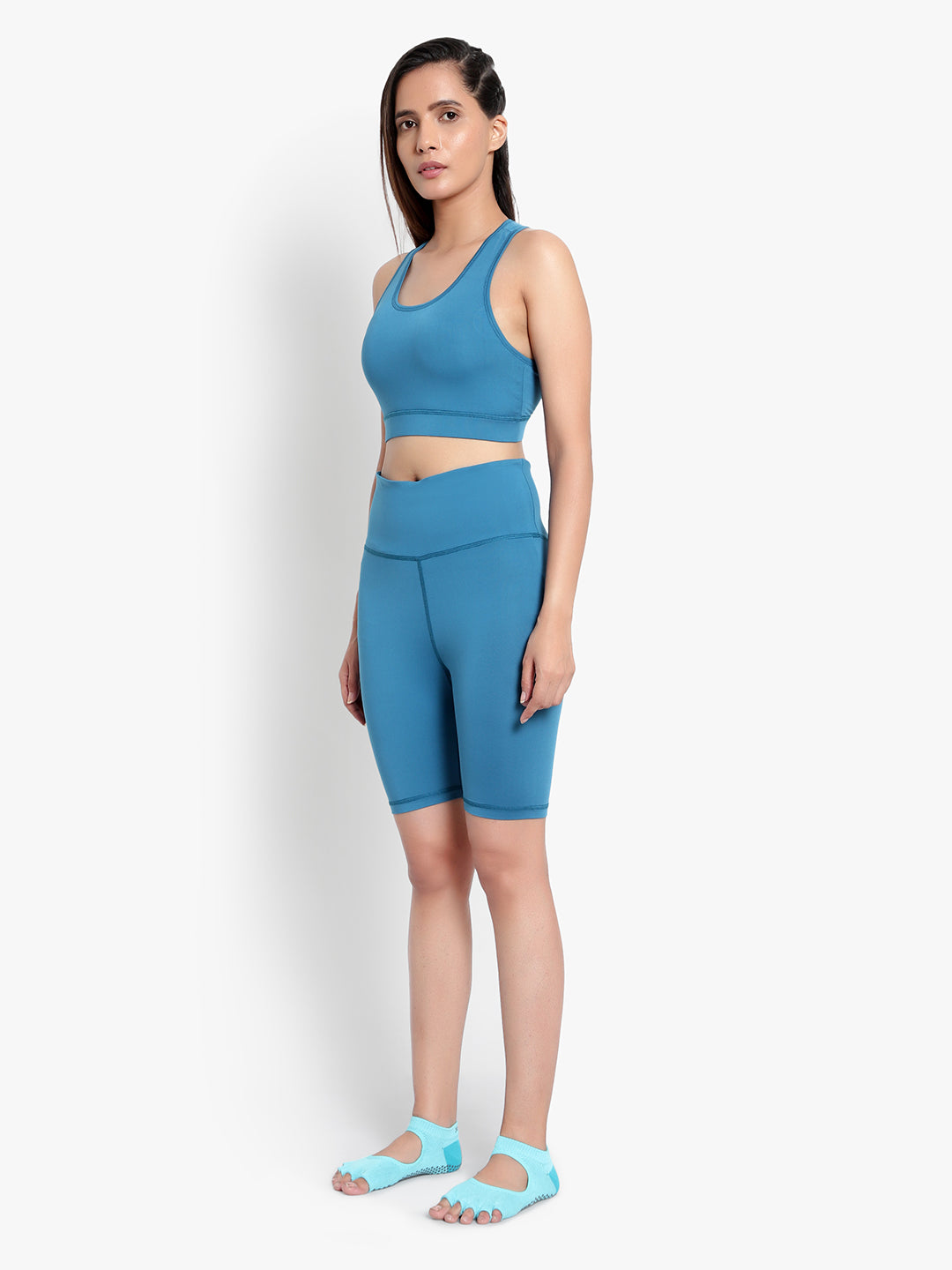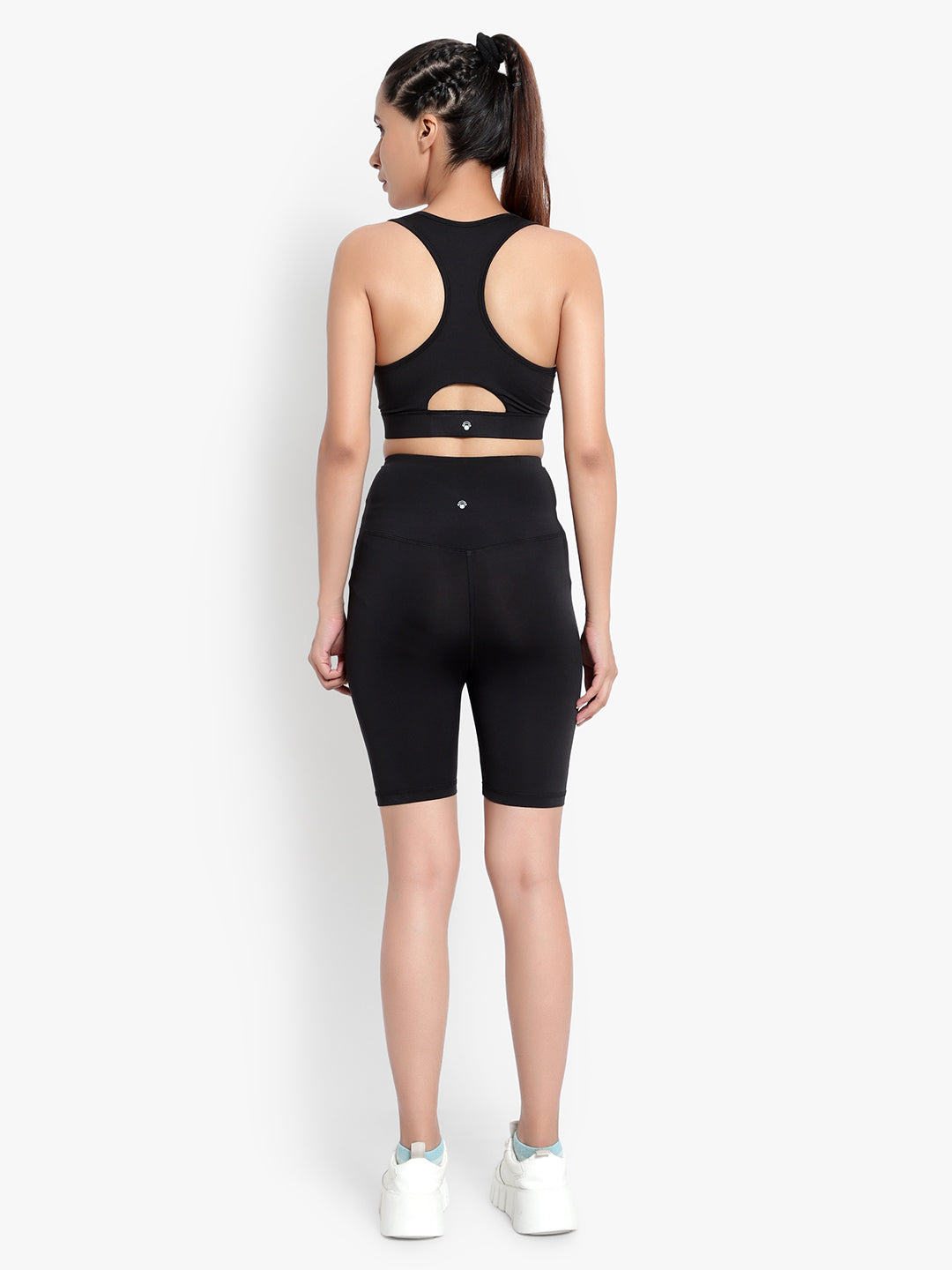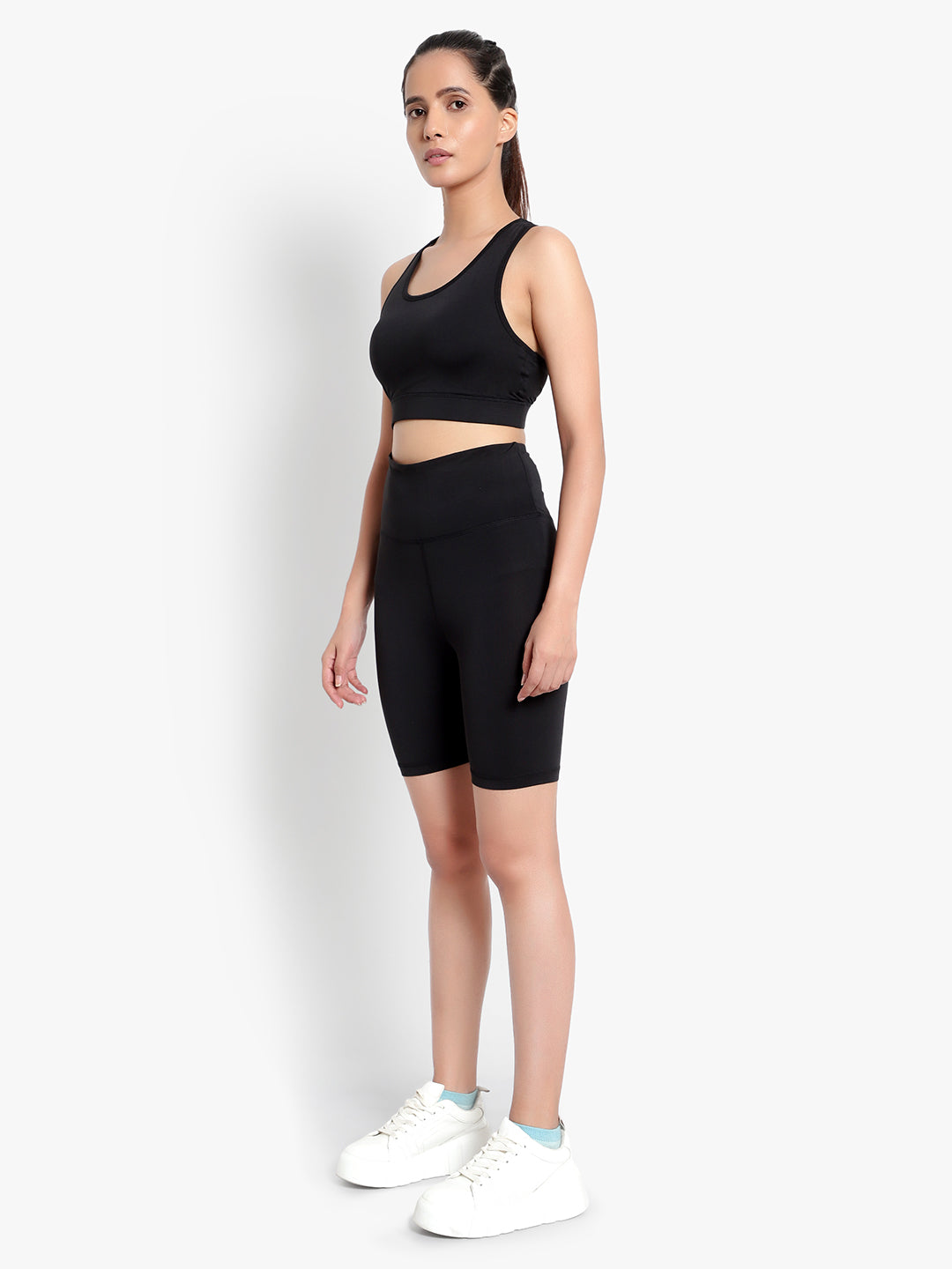 Featuring side panels, these shorts feel like a second skin, matched with a fearless, empowering and feminine Sports bra, that has removable cups. This collection’s great for workouts, yoga, dance or whenever you want to feel really, really comfortable.