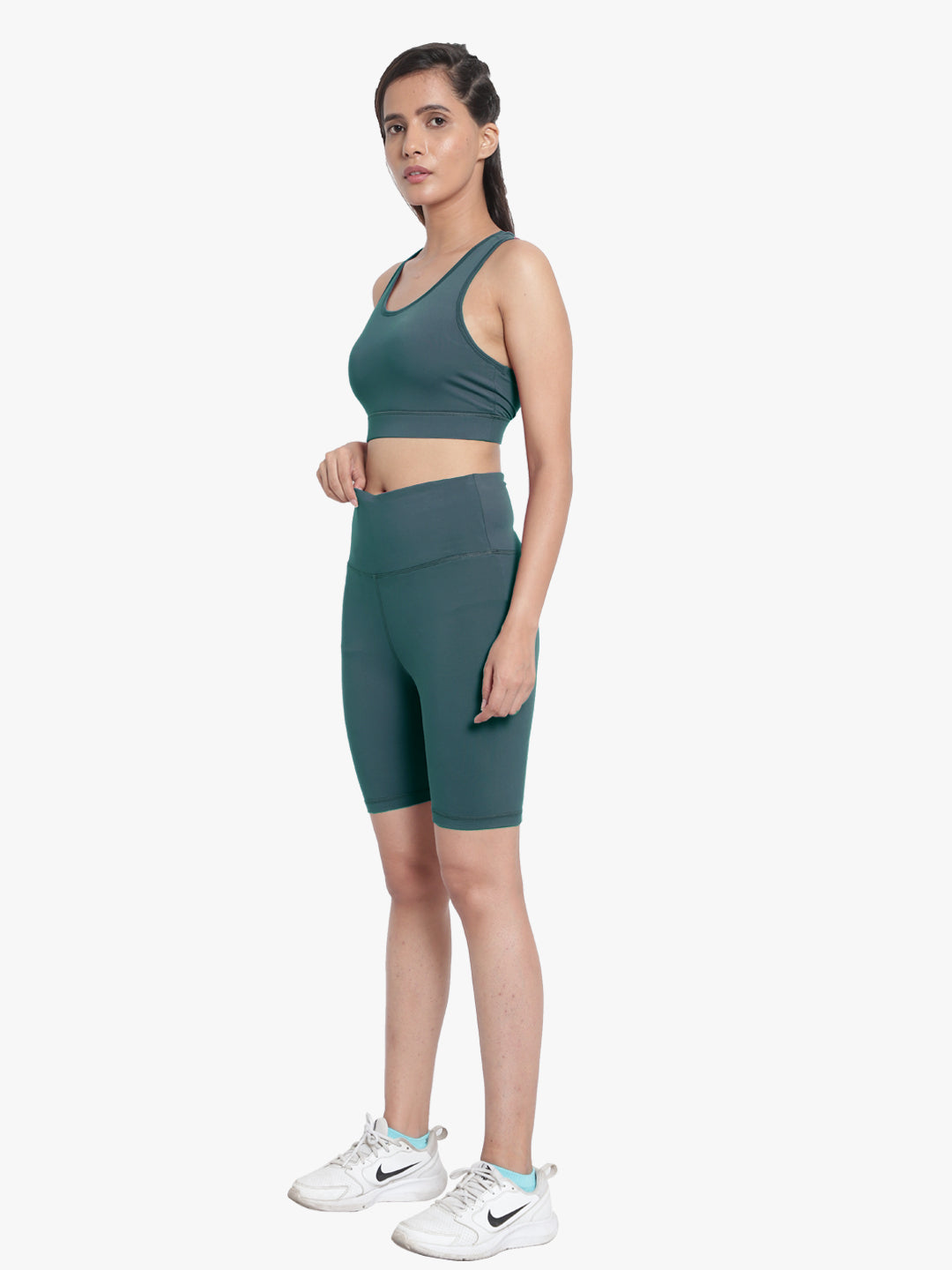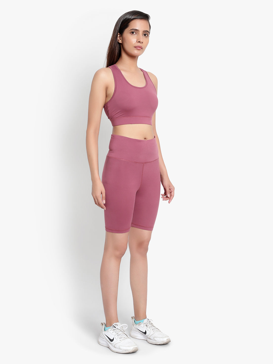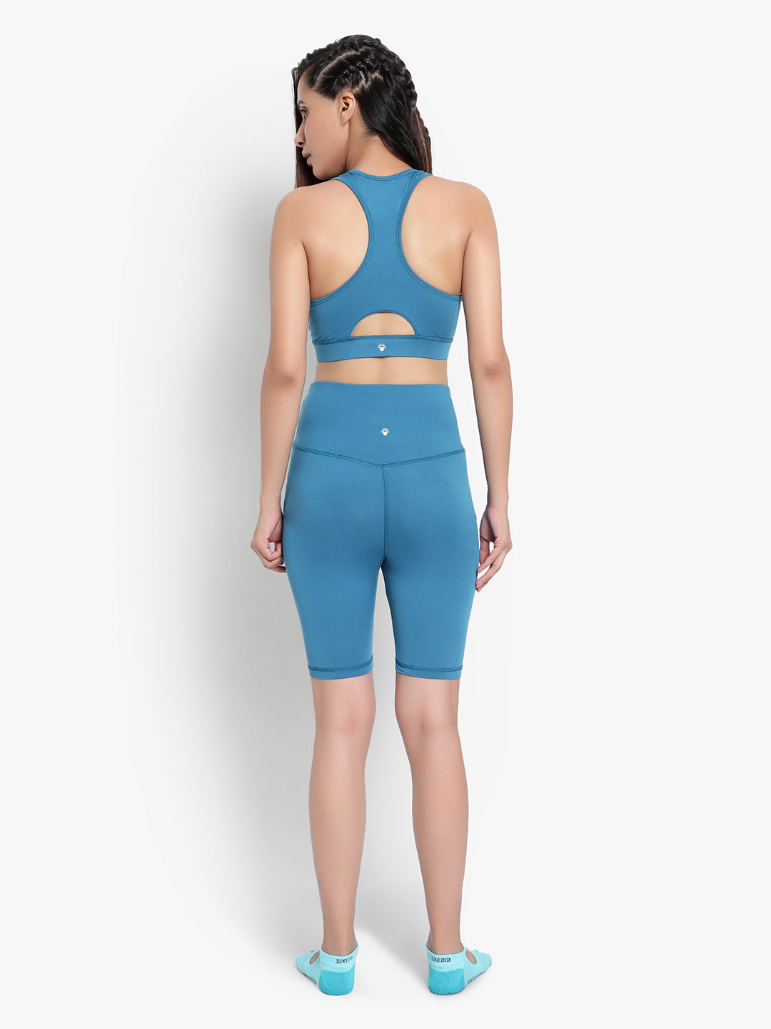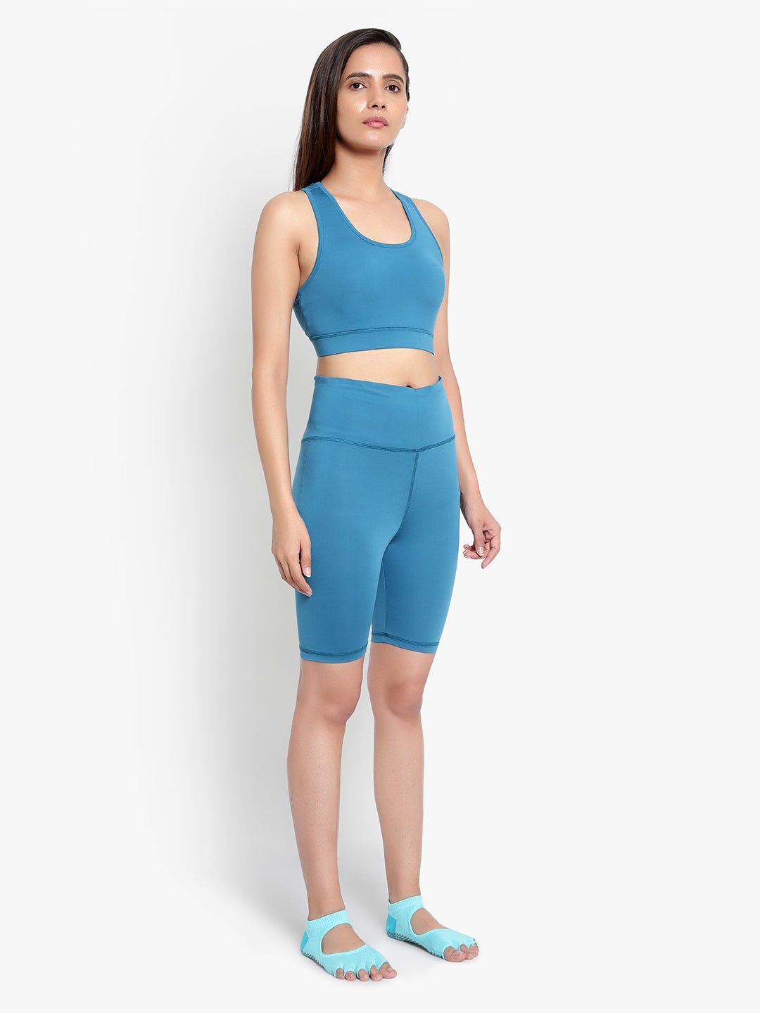 Featuring side panels, these shorts feel like a second skin, matched with a fearless, empowering and feminine Sports bra, that has removable cups. This collection’s great for workouts, yoga, dance or whenever you want to feel really, really comfortable.