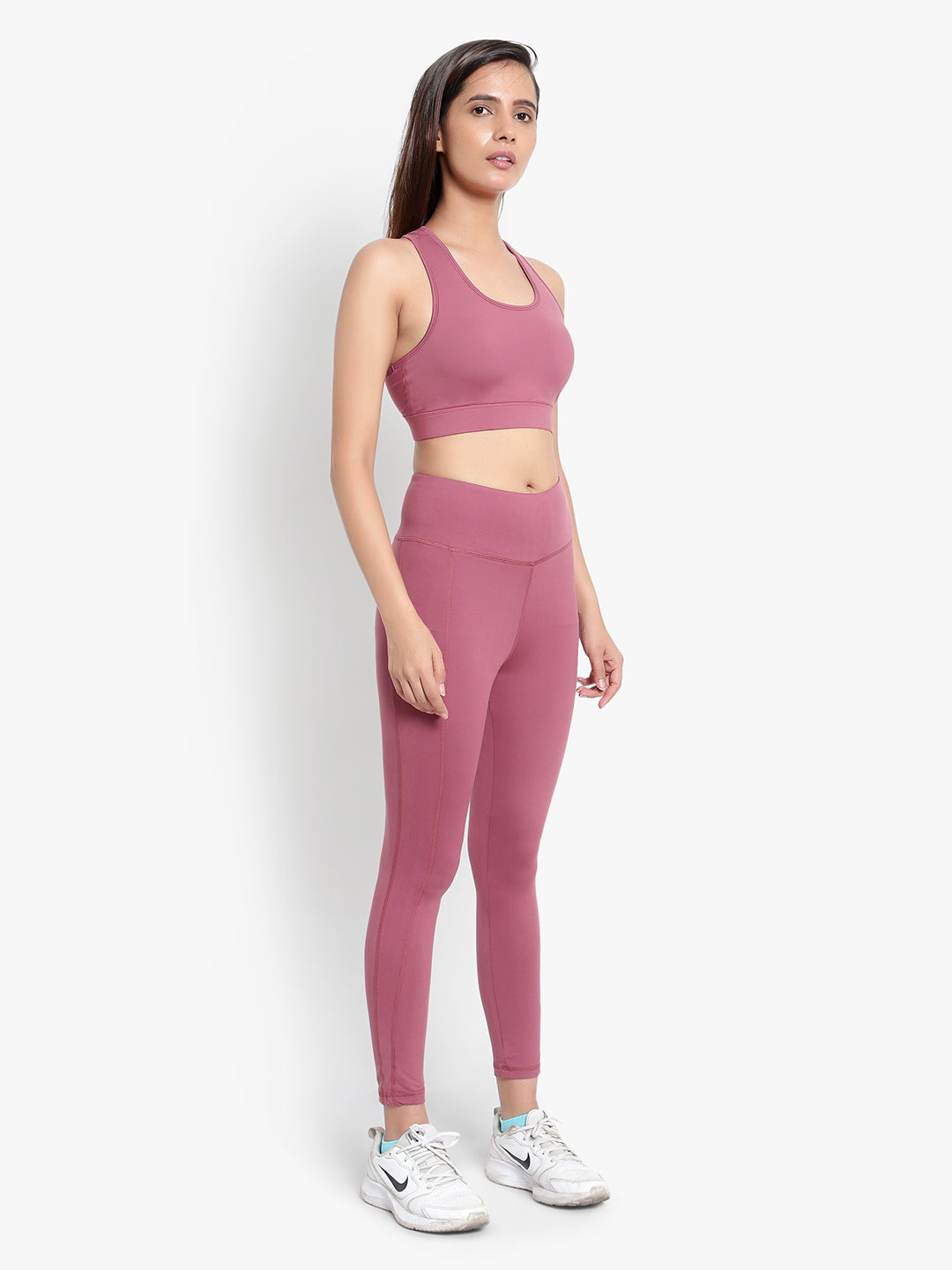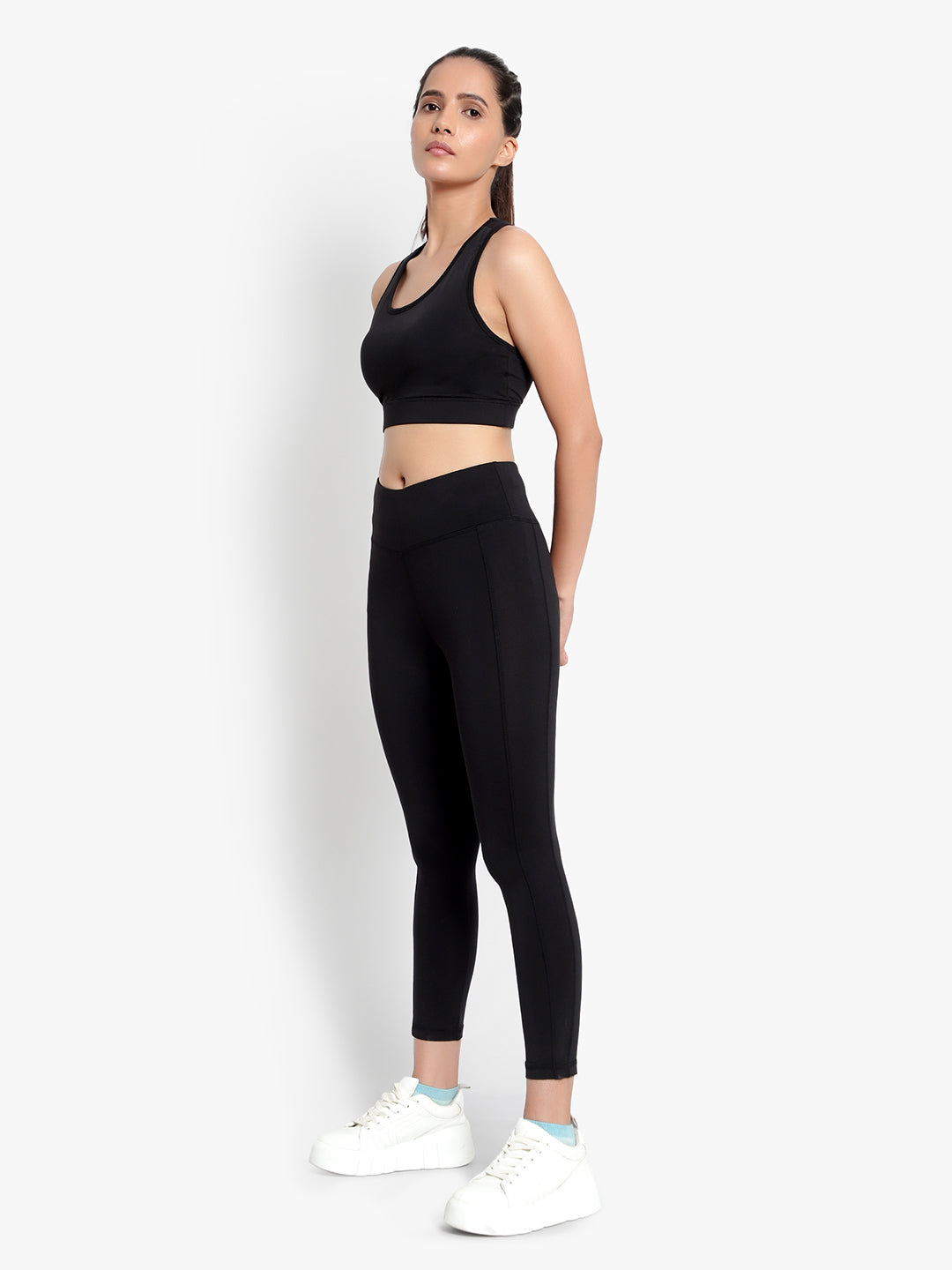 Featuring side panels, these tights feel like a second skin, matched with a fearless, empowering and feminine Sports bra, that has removable cups. This collection’s great for workouts, yoga, dance or whenever you want to feel really, really comfortable.