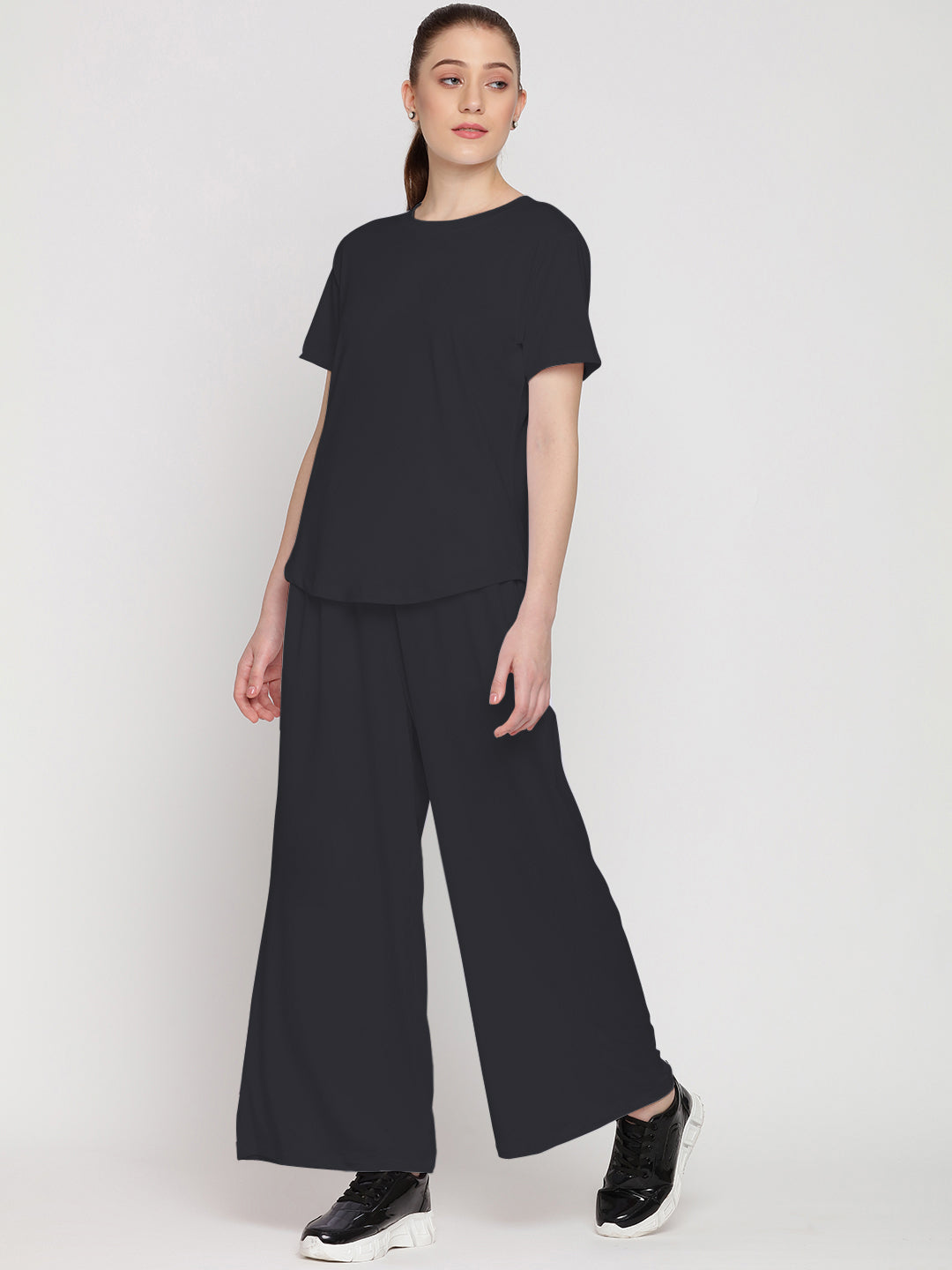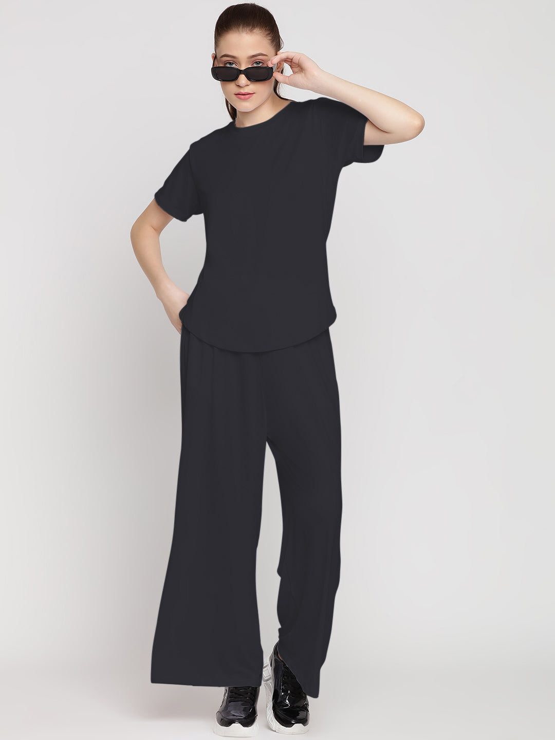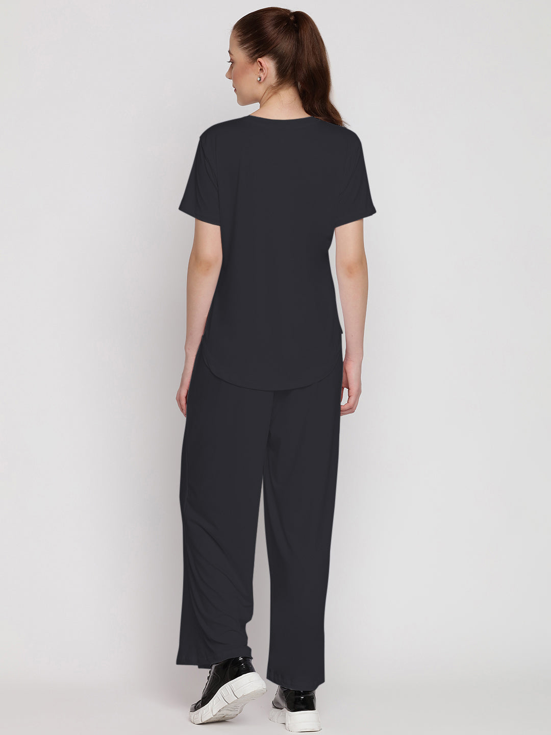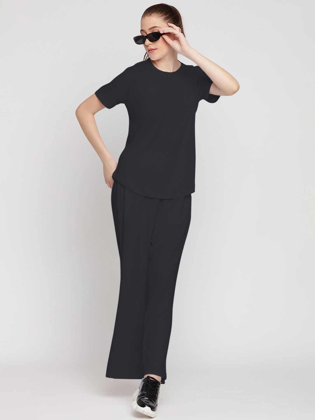 Harmony set features relaxed, wide-leg pants that flow with your every move, paired with an easy fit tee that sits below the hips, make for uneasy approach to your daily routine.