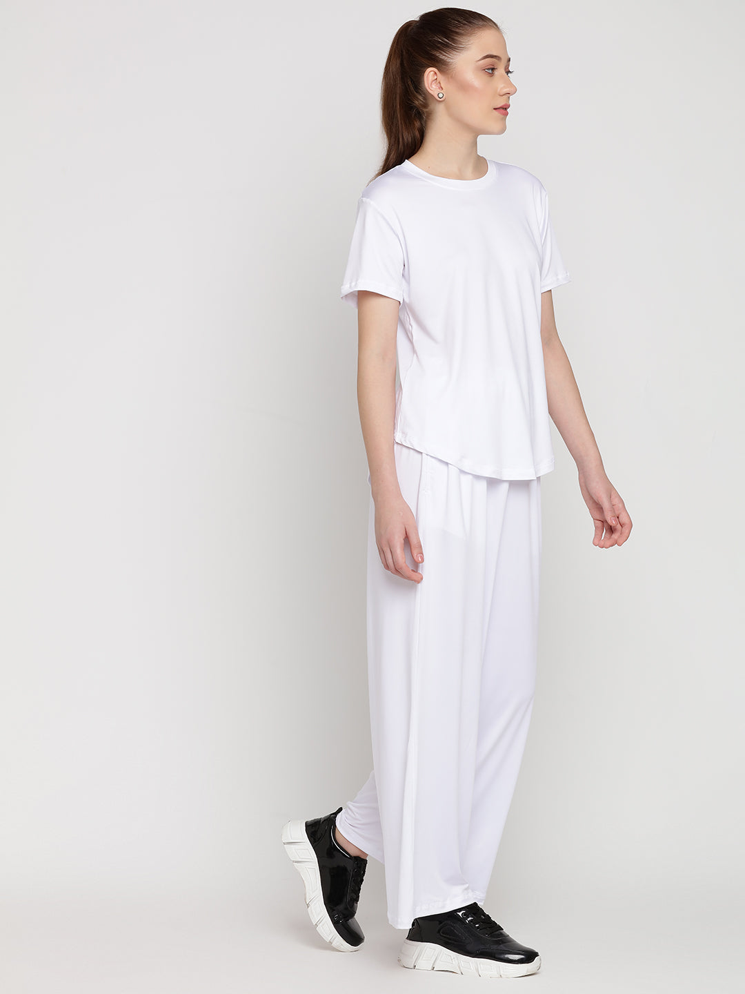 Harmony Pant features relaxed, wide-leg pants that flow with your every move, paired with an easy fit tee that sits below the hips, make for uneasy approach to your daily routine.