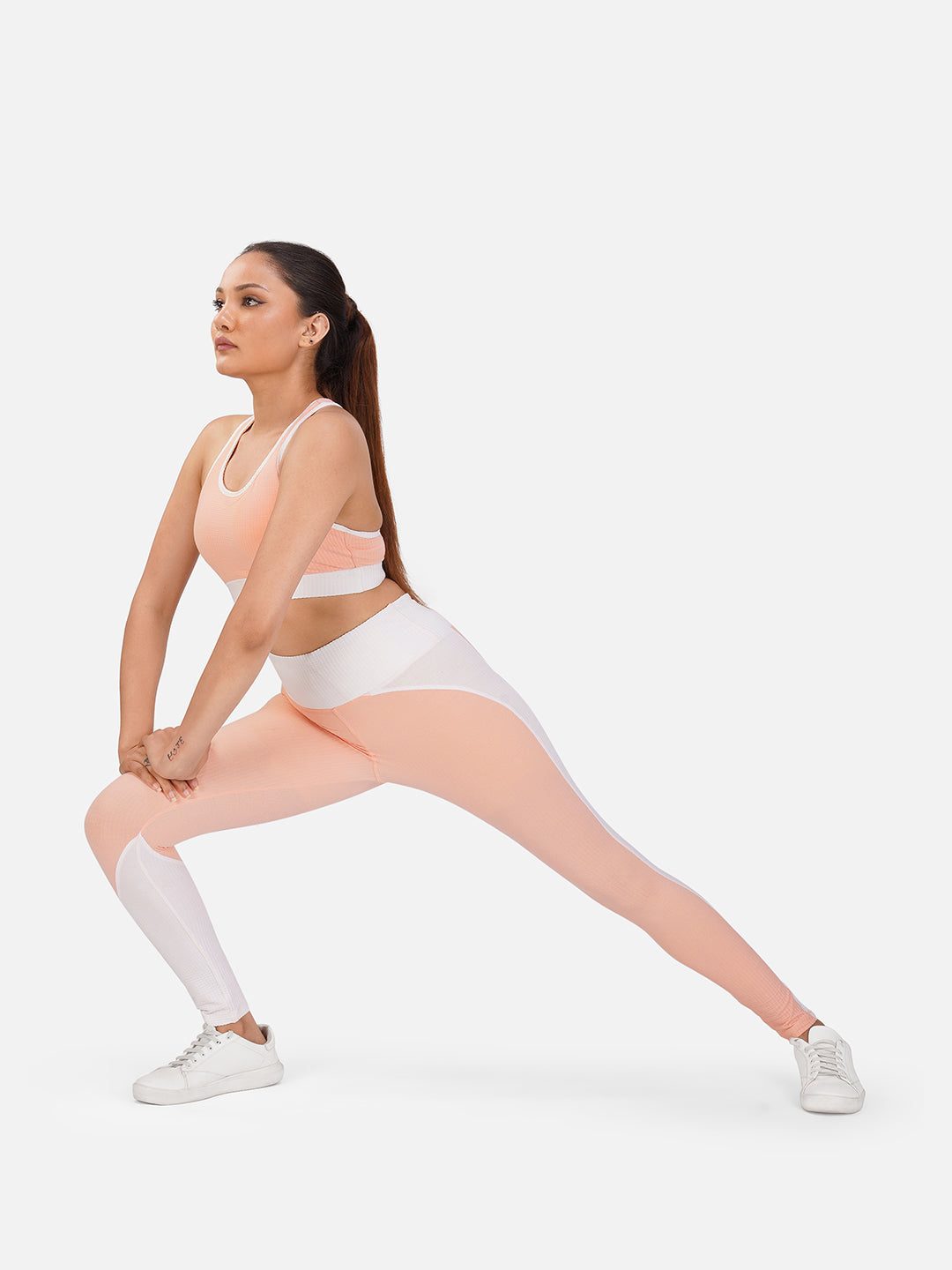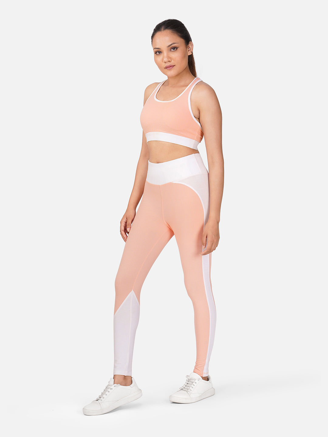 A high-performance set featuring panelled leggings and a bold, supportive sports bra—this duo is perfect for workouts, yoga, or just making a strong fashion statement. The flattering colour-blocking detail adds a dynamic touch, while the premium stretch fabric ensures a fit that moves with you.