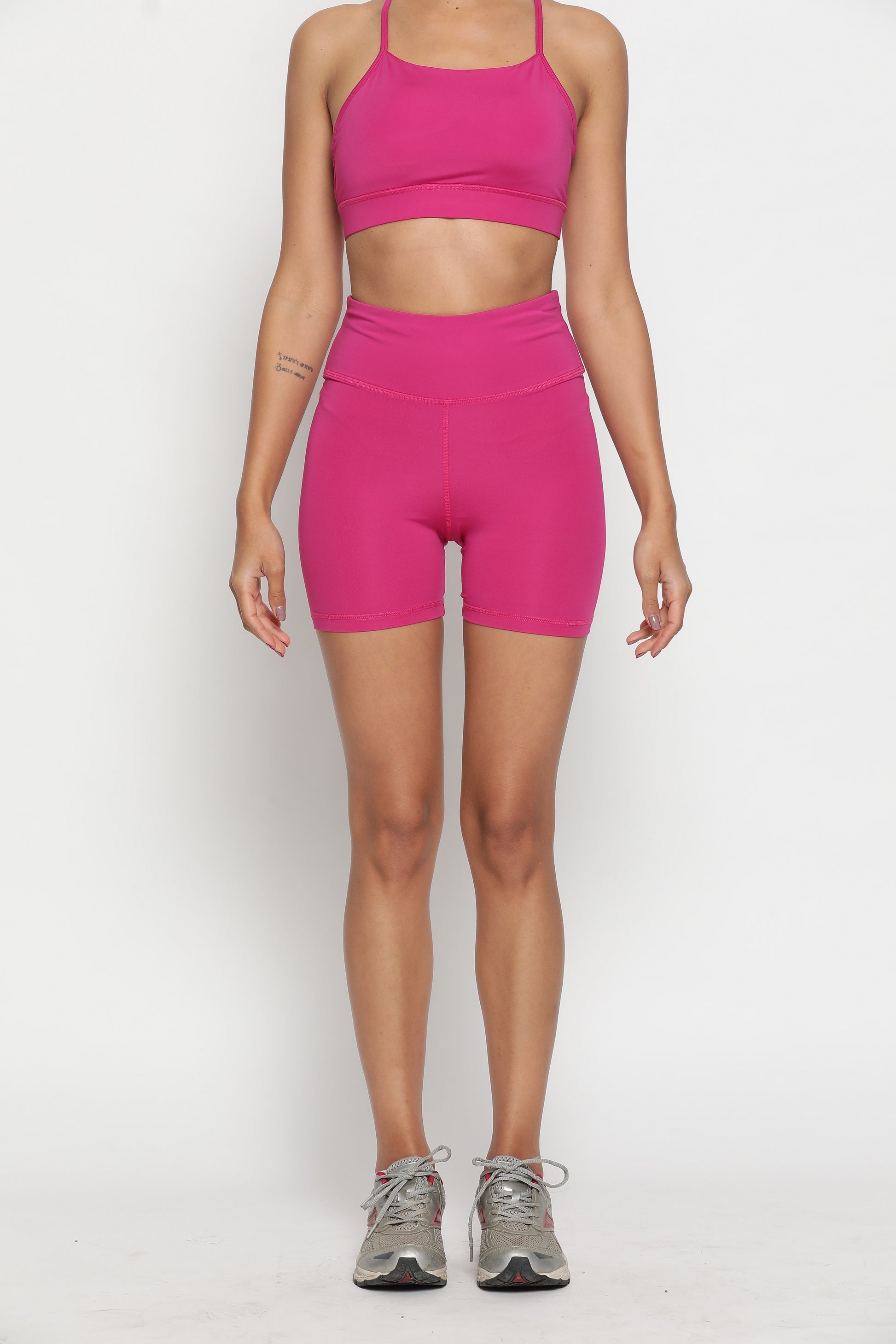 We made this classic racerback sports bra with High Waist, super comfy Shorts so you won't feel anything, but your practice.