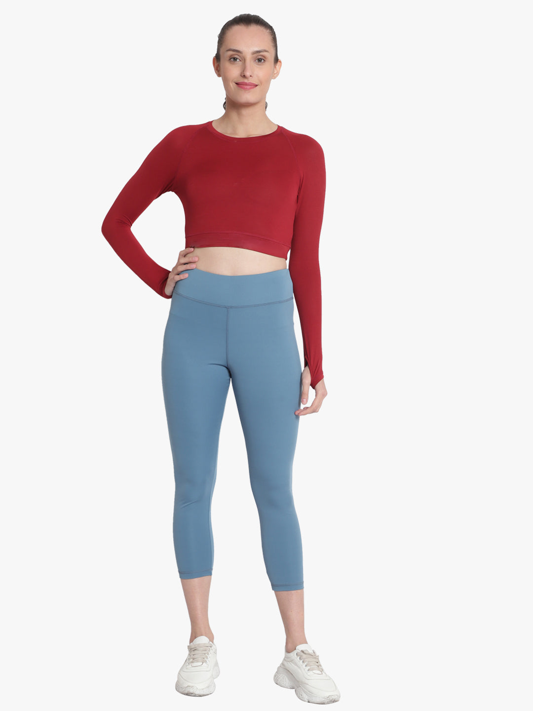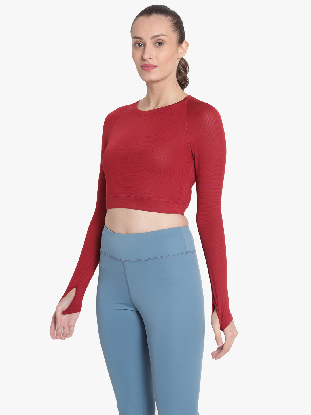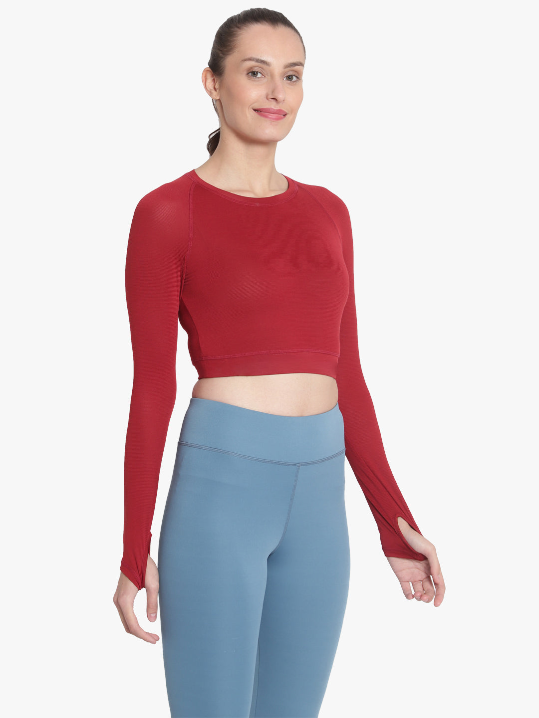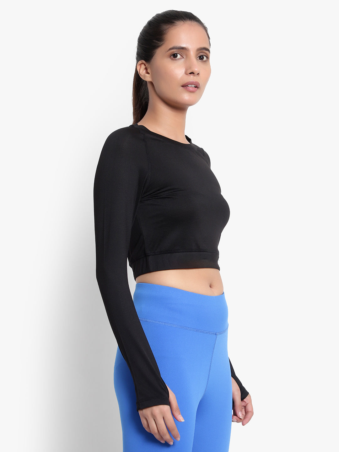 Made with breathable, sweat-wicking fabric that will move with you through even your toughest workout. The body contouring silhouette, Midriff cropped fit and thumb-holes, ensure you’re fully prepped to do it all with confidence.
