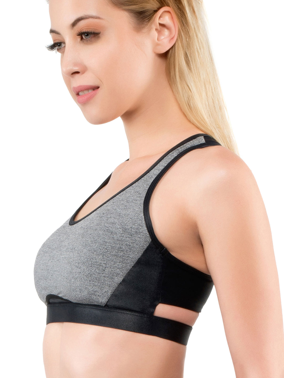 Zip Core Sports Bra - Black & Grey